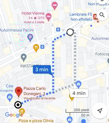 It's close to the Lambrate green metro station and Lambrate train station. A stone's throw away are the Polytechnic University of Milan, the National Cancer Institute, and the Besta Hospital. The neighborhood is excellent for aperitifs, and there's a Carrefour supermarket open from 7 am to midnight.